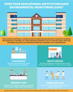 Finally, for implementing and maintaining environmental monitoring in large, complex institutions, engaging with a vendor with expertise in this area can save significant time and cost. Any educational organization with questions about environmental monitoring is encouraged to contact the experts at Dickson.