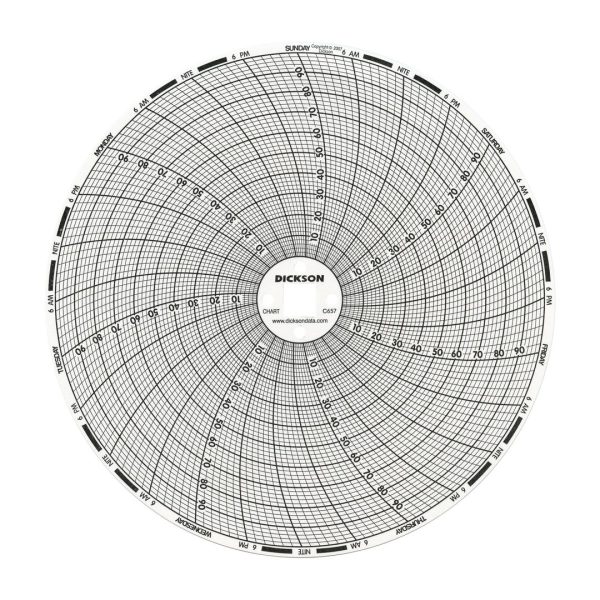 These 6″ charts come in packs of 60 and are designed for 6″ Chart Recorders. Only genuine Dickson charts are required for your chart recorder to read accurately.