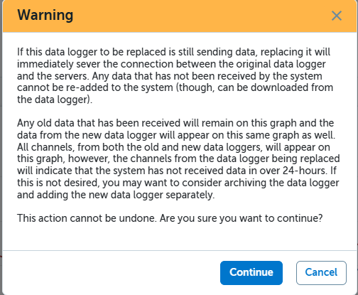 - Review the Warning and click Continue if you wish to continue or Cancel