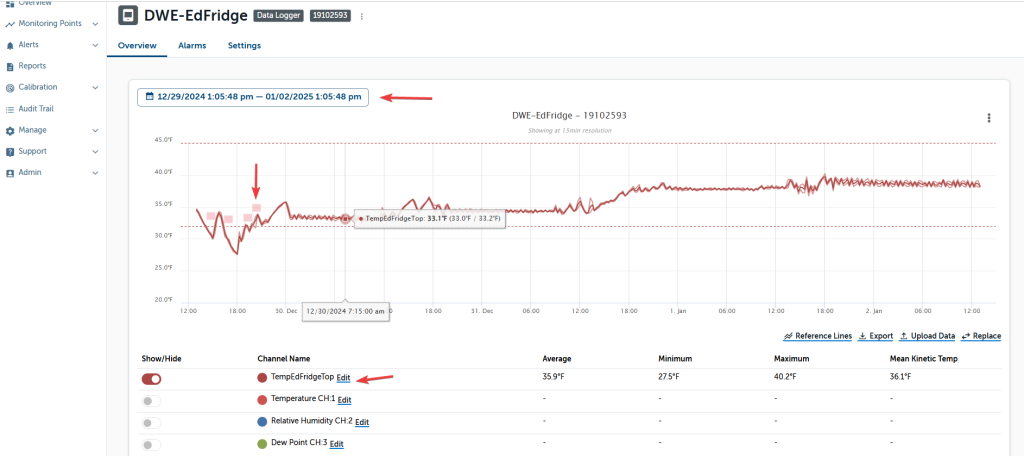 - The Channel name can be edited to your liking (e.g. Ambient Temperature Point 1, Incubator 253, Freezer 1, etc.)