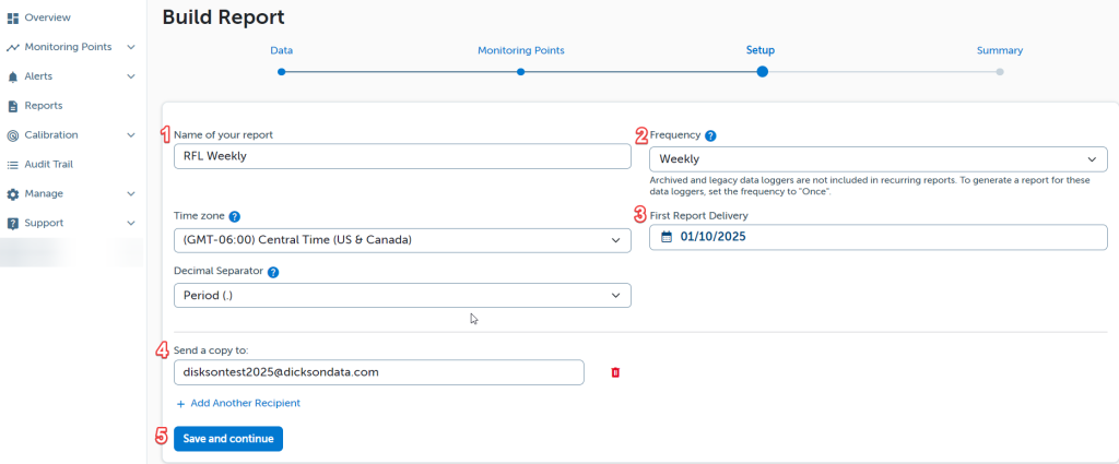 In this section, determine the frequency for how often the report should be delivered